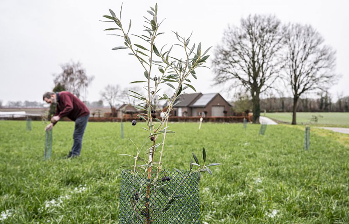 Dat was ook een van de redenen waarom de teler vorig jaar aan de slag ging met olijfbomen. Twintig jaar geleden maakte Van de Bool al kennis met de teelt, tijdens zijn stage in Nieuw-Zeeland. ‘Daar zag ik dat deze bomen prima tegen vorst kunnen. Toen ik vorig jaar hoorde dat ze in Oostenrijk al olijven teelden, was de tijd naar mijn idee rijp om er ook in Limburg mee te starten. Ik kocht daarop een aantal bomen in Portugal.’
